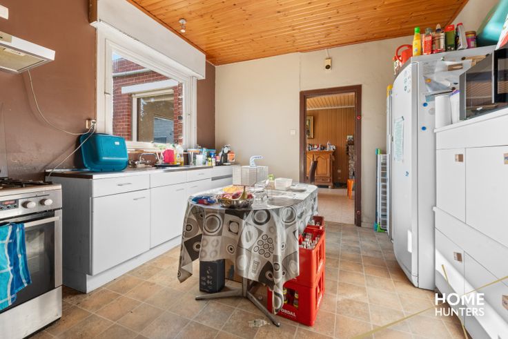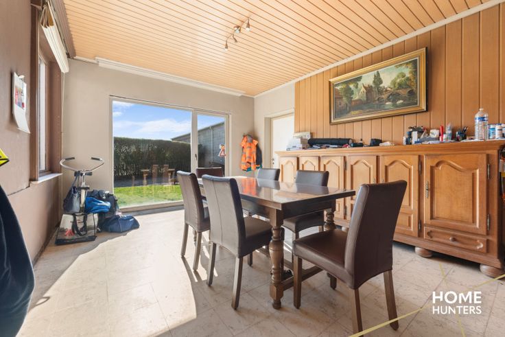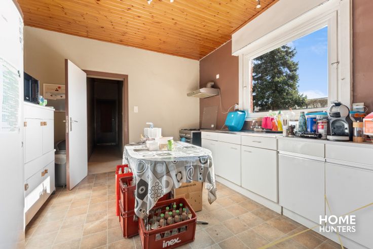 Te Zonnebeke huisvest zich deze alleenstaande woning met loods van 455 m² op een perceel van 2572 m². De woning bestaat uit een inkomhal met aansluitend een berging, een ruime woonkamer, een veranda, een leefkeuken, een nachthal, 2 slaapkamers, een badkamer en een zolder die vrij in te delen is. De tuin is zuid georiënteerd. Het volledige eigendom is omheind, de loods is in en errond voorzien van gepolierd beton en is alsook voorzien van drijfkracht. Troeven: * Alleenstaand karakter * Loods 455 m² * Perceel 2572 m² * Zuid georiënteerde tuin * Zolder vrij in te delen * Drijfkracht aanwezig