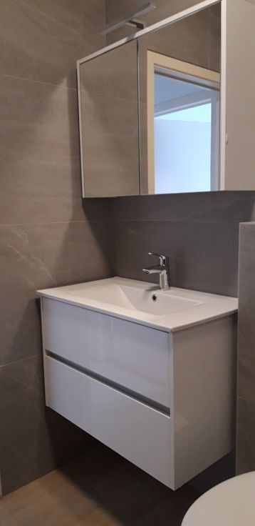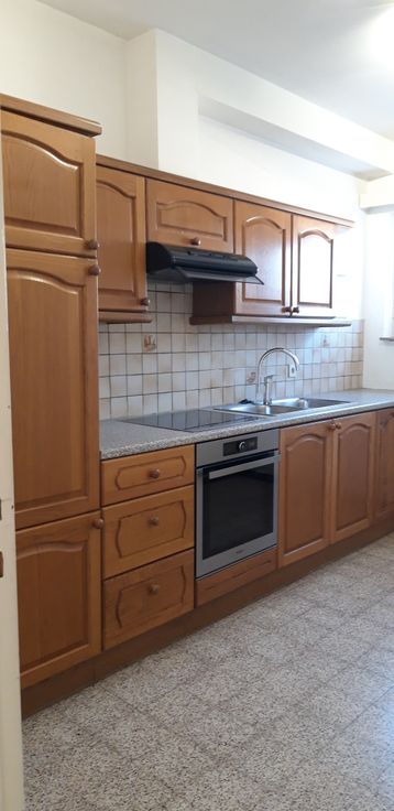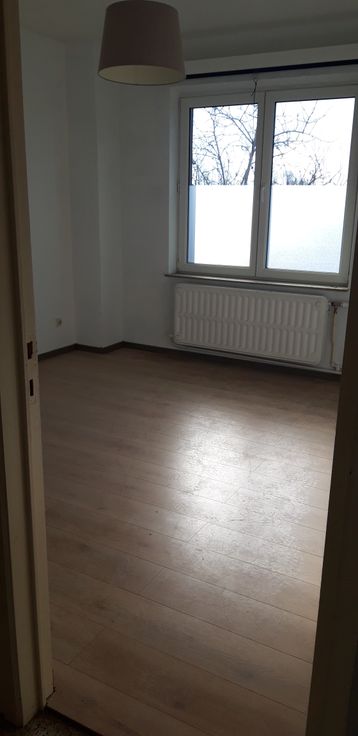 Bel appartement de 2chambres dans un petit immeuble à deux niveaux. Rez de chaussée : garage avec porte télécommandée, buanderie avec chaudière à mazout et cour sur l'arrière. Au second étage appartement avec cuisine semi-équipée, salon/salle à manger, 2 chambres sur l'arrière et une salle de bains toute nouvelle avec douche à l'italienne.