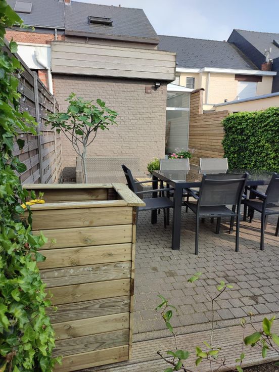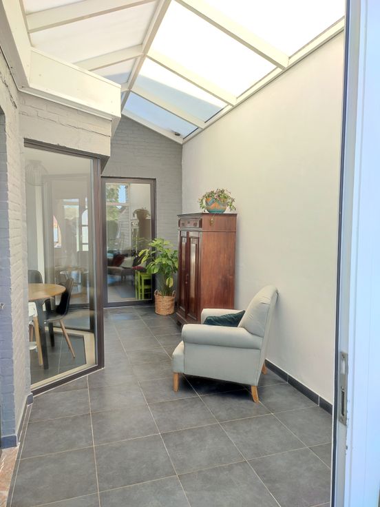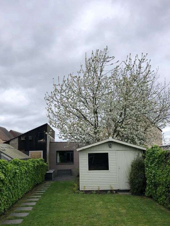 Halverwege de Broekstraat, op een 200 m van het natuurgebied ‘Het Broek’, vinden we deze instapklare karakteristieke rijwoning terug. Via de inkomhal met retrotegel bereiken we de gezellige leefruimte met volgende elementen: parketvloer, schouw met pelletkachel, hoge plafonds en een authentieke boog. Achter de living bevindt zich de volledig uitgeruste keuken. Aanpalend is er een veranda te vinden die uitgeeft op het ruime terras. Verder is er op het gelijkvloers nog een lichtrijke badkamer met dubbele lavabo, bad én douche aanwezig. De woning beschikt ook over een droge kelder.