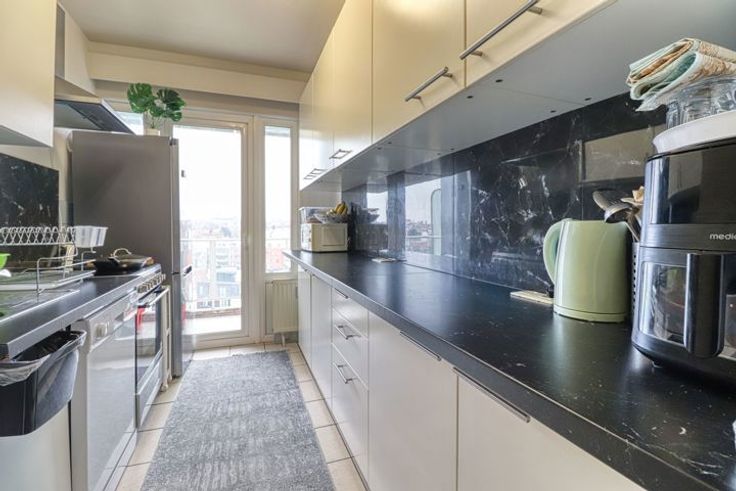 VIDEO link: https://youtu.be/6H6NVfZwMs4 (COPY - PASTE) In de prachtige wijk Château de Rivieren presenteert Hestia Immobilier dit appartement met 3 slaapkamers en een terras van 103m² gelegen op de 9e verdieping. Het bestaat uit een inkomhal met ingebouwde kast, een lichtrijke woonkamer van 30m² met uitzicht op een terras van 10m² op het ZUIDEN, een ingerichte keuken, een nachthal, 3 slaapkamers van 15m², 14m² en 10m², een badkamer met ruimte voor de wasmachine en een apart toilet. Het appartement beschikt tevens over een kelder. VERPLICHTE GARAGE aan 30.000 EUR. Recent dubbel glas, PEB: E+ Elektriciteit voldoet aan de normen Vrij om te handelen. Kosten: 356 euro/maand (verwarming, water c/f, trustee, verzekering, conciërge) + 133 euro/maand (reservefonds) Roerende belasting: +/- 1400 EUR METINGEN GEGEVEN VOOR INDICATIEVE EN NIET-CONTRACTUELE DOELEINDEN Meer info: 0479.113.116 www.hestia-immobilier.be Hestia Immobilier, uw makelaarskantoor. Neem contact met ons op voor een GRATIS schatting