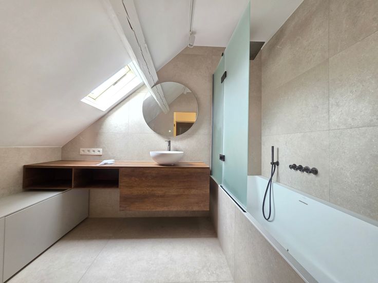 Une nouvelle salle de bains avec baignoire.
