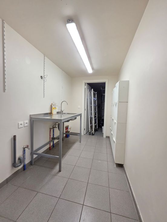 Une arrière cuisine (avec évier et armoires à chaussures),