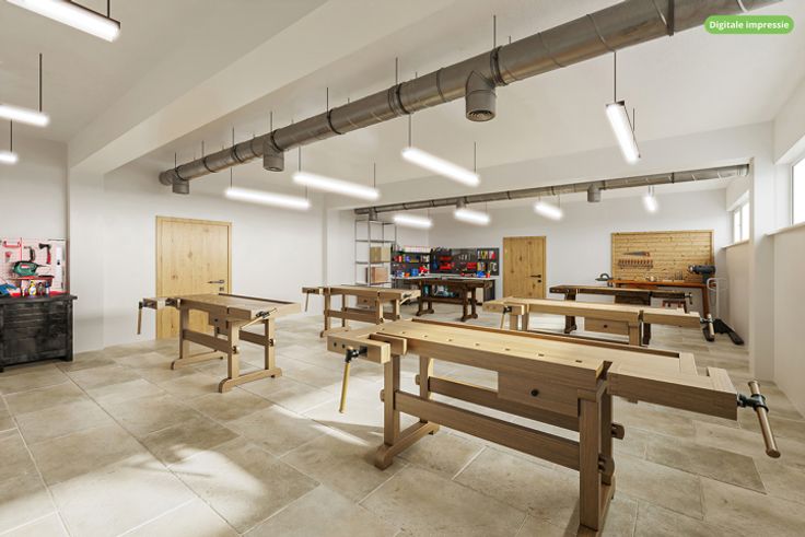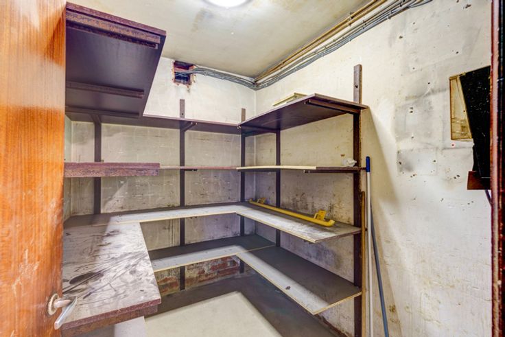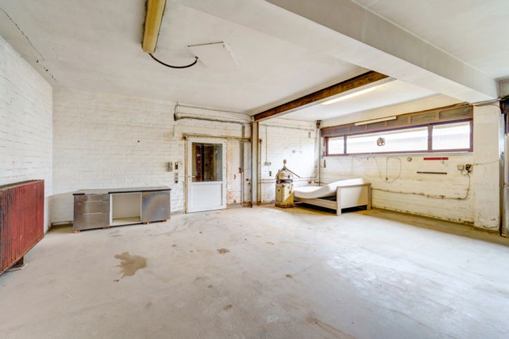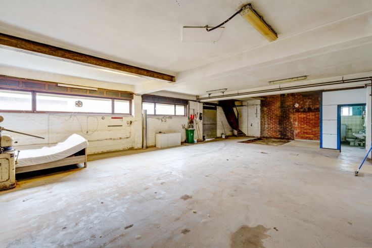 Magazijn: Grote opslagruimte, ingedeeld in verschillende secties, ideaal voor commerciële doeleinden.