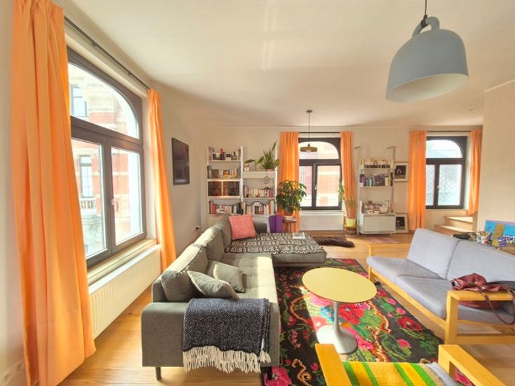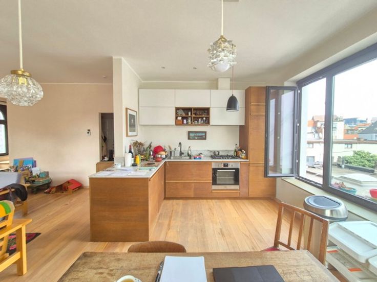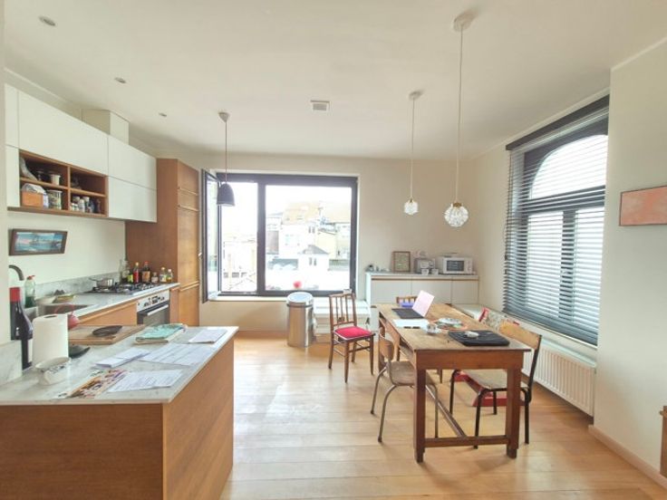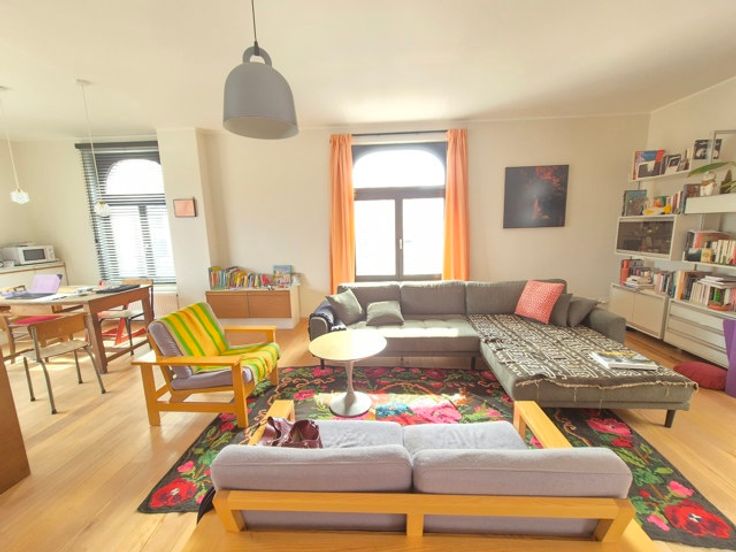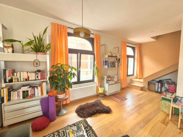 QUARTIER CANAL : Situé sur un joli petit square et dans petit immeuble de caractère divisé et aménagé en 2021-22 de 3 unités seulement et sans ascenseur, superbe et lumineux duplexd'une surface brute de +/-145 m² - (126 habitables) situé aux 2ème et 3ème étage, totalement en ordre au niveau urbanistique.