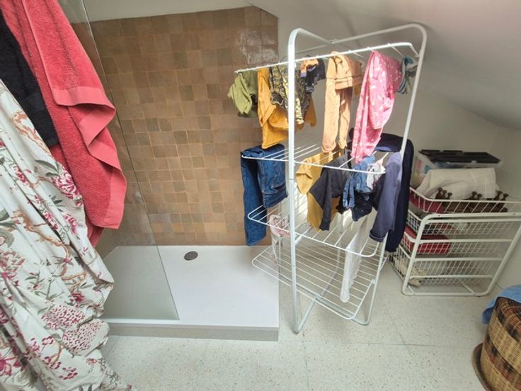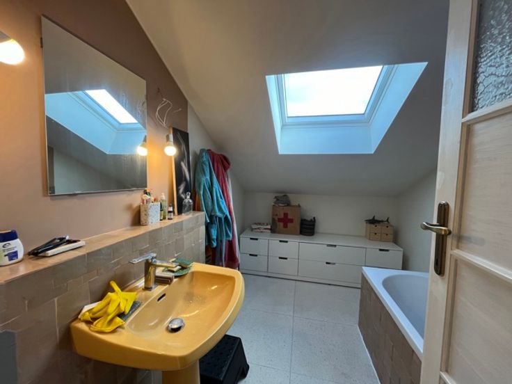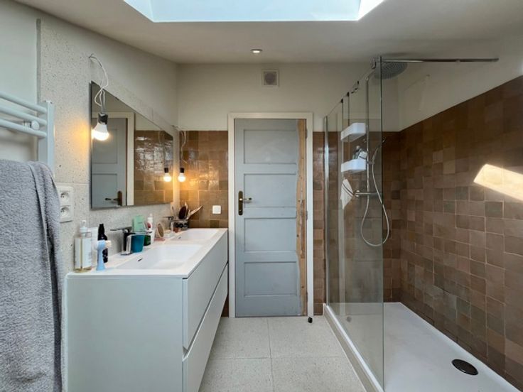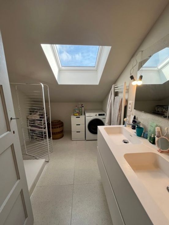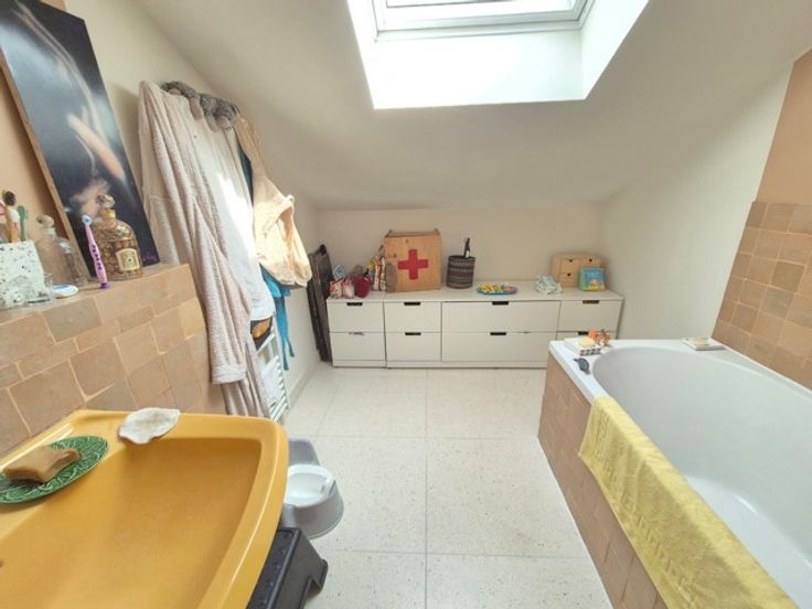 - A l'étage supérieur : 3 belles chambres dont 1 avec placards , salle de bains et salle de douche avec buanderie en parfait état avec wc.
