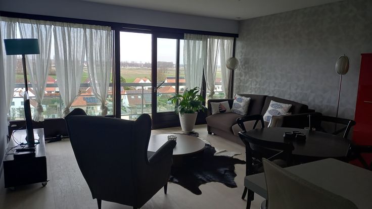 Appartement 1 chambre très lumineux situé dans domaine privé avec piscines privées d'eau chaude, jardins et promenades, plage privée sur lac, ping-pong, à proximité directe (extérieur) de centre sportif. Très belle vue sur la campagne, futur golf et Knokke. A deux pas de la gare de Duinbergen, de la mer et à 20 min. +- à pied du centre de Knokke. Local à vélo et emplacements voiture gratuits à l'arrière de l'immeuble, syndic dans l'immeuble. Magasins, restaurants à proximité. Grande pièce de vie le long de la terrasse avec cuisine hyper équipée (lave-linge, lave-vaisselle, frigo, micro-ondes, hotte, ...), chambre avec accès à. la salle de douche, wc. Placard intégré. Très belle terrasse avec magnifique vue dégagée. Parquet dans l'ensemble de l'appartement. Se vend avec ou sans meubles. L'appartement vient d'être intégralement renouvelé. Visites uniquement sur rv, de préférence le samedi et le dimanche à partir de 16H00.