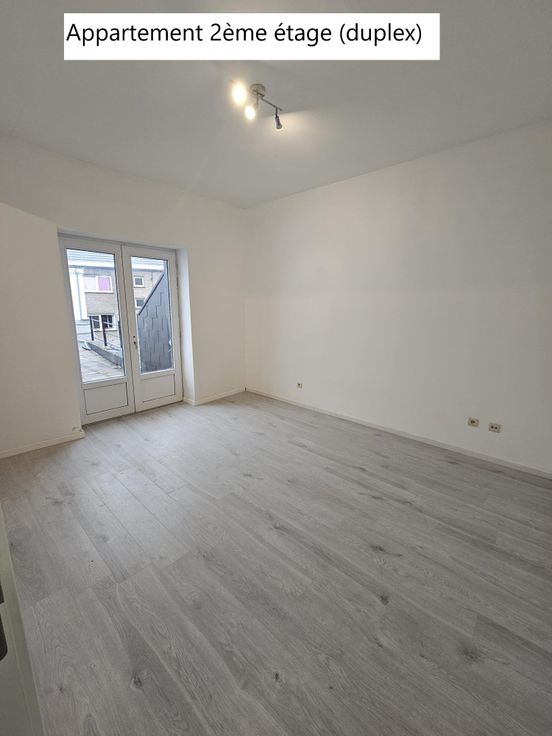 2 logements sont disponibles : 1 appartement au 1er étage (env.60 m2) - 750 euros + 40 euros (provision eau) / mois : - 2 chambres (env. 8 m2 et 10 m2). - 1 salon / salle à manger / cuisine - 1 salle de bain - 1 WC séparé - 1 terasse (env. 12 m2) L'appartement vient d'être raffraichi =================================================== 1 Duplex - 850 euros + 50 euros (provision eau) / mois : Le duplex est composé de : 1 appartement au 2ème étage (env. 45 m2) : - 1 Chambre (env. 9 m2) - 1 salon / salle à manger / cuisine - 1 salle de bain avec WC - 1 terasse (env. 25 m2) 1 studio au 3ème étage (env. 40 m2) : - 1 salon / salle à manger / cuisine / chambre - 1 salle de bain avec WC Le duplex vient d'être raffraichi ==================================================== Visites sur rendez-vous au 0479/23.01.70 - 0491 / 22.03.00 UNIQUEMENT de 18h à 19h en semaine.