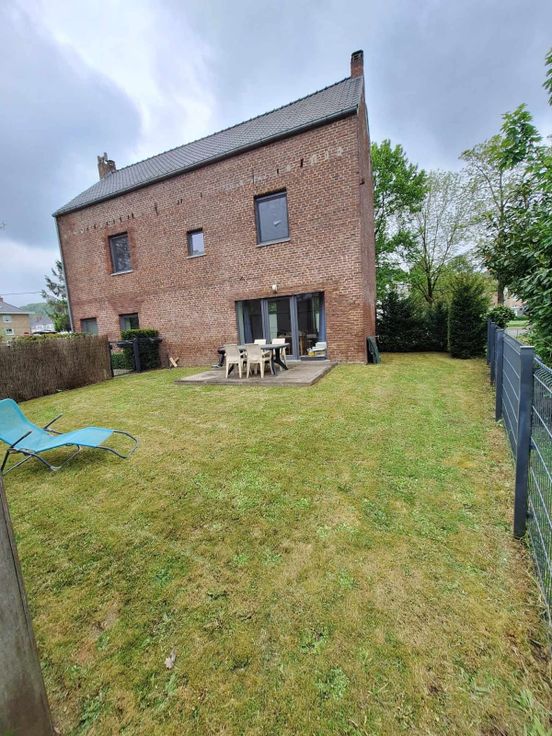 Maison 4 façades entièrement rénovée comprenant 1 jardin avec terrasse, 2 grandes chambres, 1 dressing, 1 salle de douche, 2 WC, 1 grand living avec cuisine ouverte équipée d'un lave-vaisselle, four, évier, taque et hotte, 1 buanderie, 1 place de parking. Chauffage au gaz de ville, faible consommation car très bien isolée (PEB B). Libre à partir du 01/06/2025.