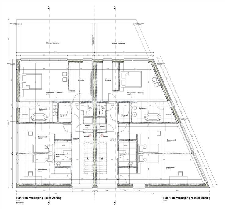 - halfopen bebouwing (perceel rechts) met een bewoonbare oppervlakte van 201,5 m2 (met tuin en dakterras) met een gevel breedte van 11, 58 meter.