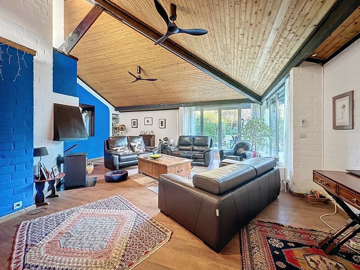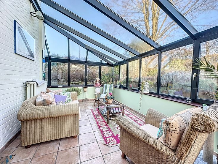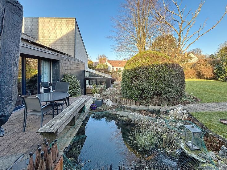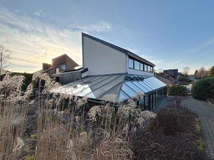 Cette belle villa contemporaine, construite en 1975 et rénovée entre 2010 et aujourd'hui avec des matériaux de qualité, offre un espace habitable de ±170 m², plus une véranda de ±26,50 m², soit environ 225 m² bâtis au total. Le terrain de ±7 ares 80 est orienté sud-est et comprend un bassin d'agrément.
