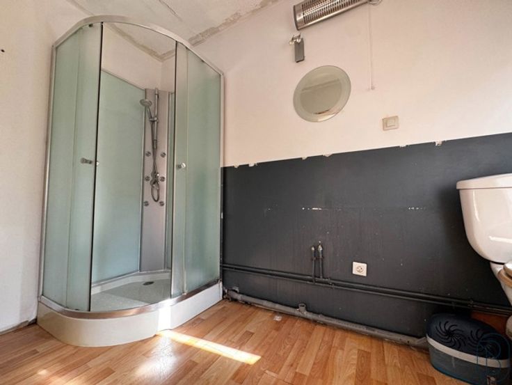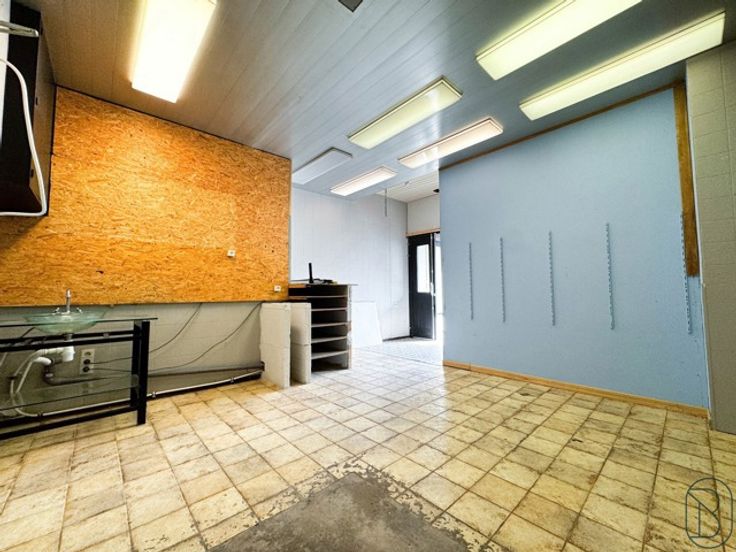 Het commerciële gelijkvloers bestaat uit een grote ruimte van bijna 100 m², een privé-binnenplaats met toegang tot een woongedeelte: leefruimte, een slaapkamer met douche en toilet, evenals een ruime kelder van ongeveer 50 m².