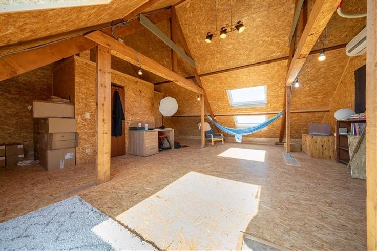 Zolderverdieping (54m2): traphall, slaapkamer 5 (of grote hobbyruimte) met 4 dakramen, berging/stookruimte, 12 fotovoltaïsche panelen op het dak (4.680Wp)
