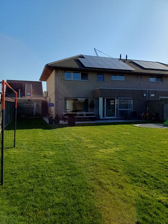 • Recent aangelegde tuin met tuinhuis en ingebouwde trampoline
