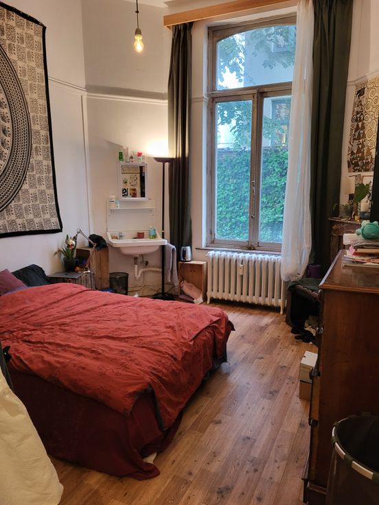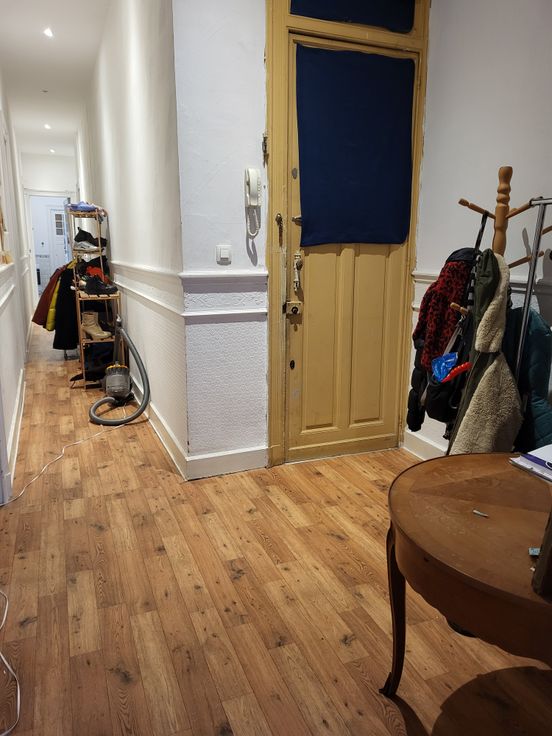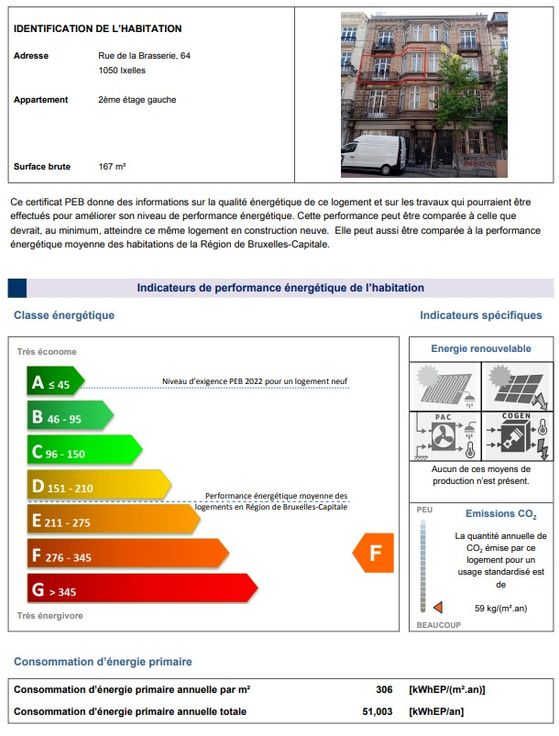 Entre Flagey et Mérode, dans un superbe immeuble de caractère de style maison de Maître se trouve au spacieux et bel appartement au 2ème étage sans ascenseur, de près de 167m² brut + terrasse arrière de +/-7m² et balcon avant. Se composant d'un hall d'entrée avec grand couloir donnant accès à toutes les pièces, deux chambres à l'avant, deux grandes pièces centrale (= séjour) d'environ 42m² avec accès terrasse, cuisine équipée d'environ 11m², deux chambres à l'arrière , salle de bain avec emplacement machine à laver, une toilette séparée / au rez un local vélos / élec. aux normes / PEB F / compteur eau-gaz-élec individuel / chauffage gaz collectif / INFO et VISITES SUR RDV ! (Permis d'urb. appt 3ch)