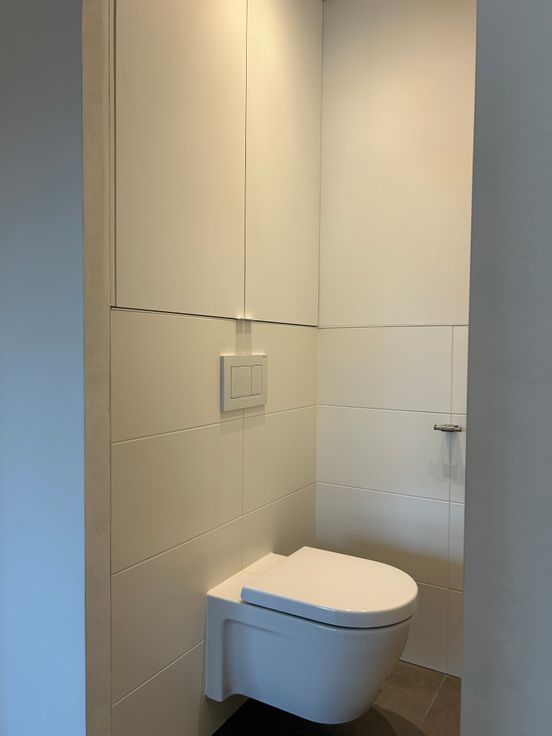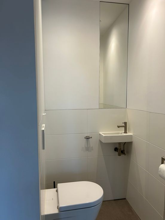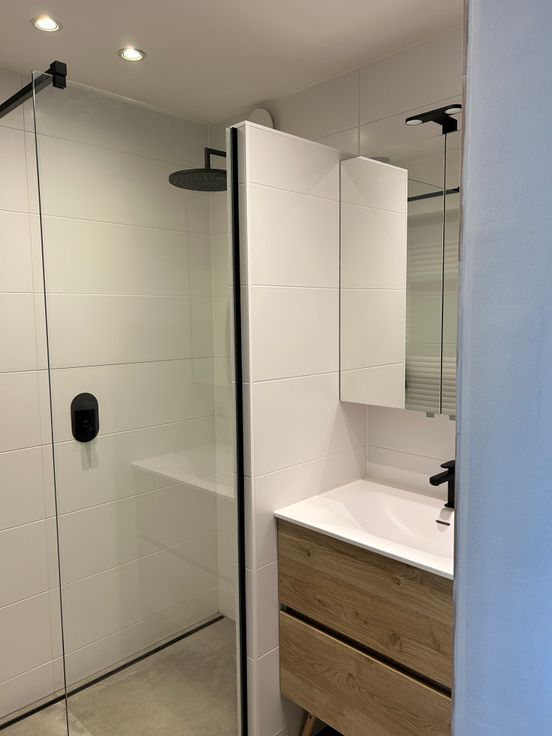 Badkamer met inloopdouche-180cm en appart gastentoilet (nog te voorzien van binnendeuren).