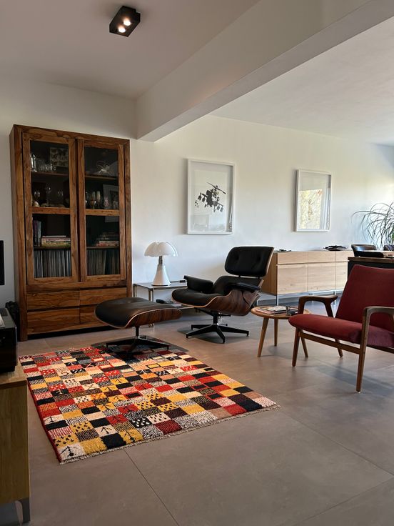 Ruime living waar je via een grote schuifraam toegang krijgt tot het west georiënteerd terras vooraan (manuele zonneluifel).