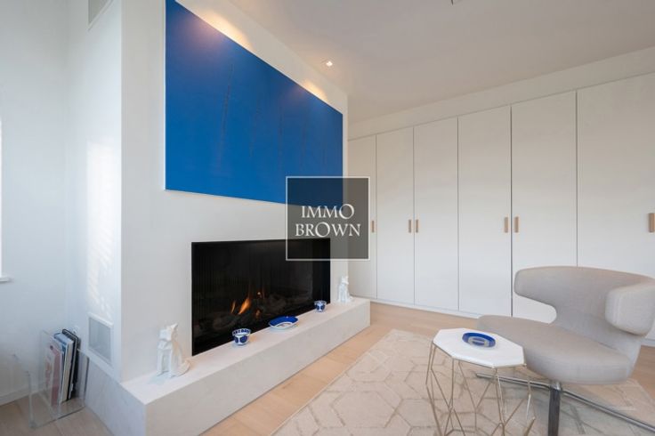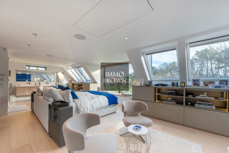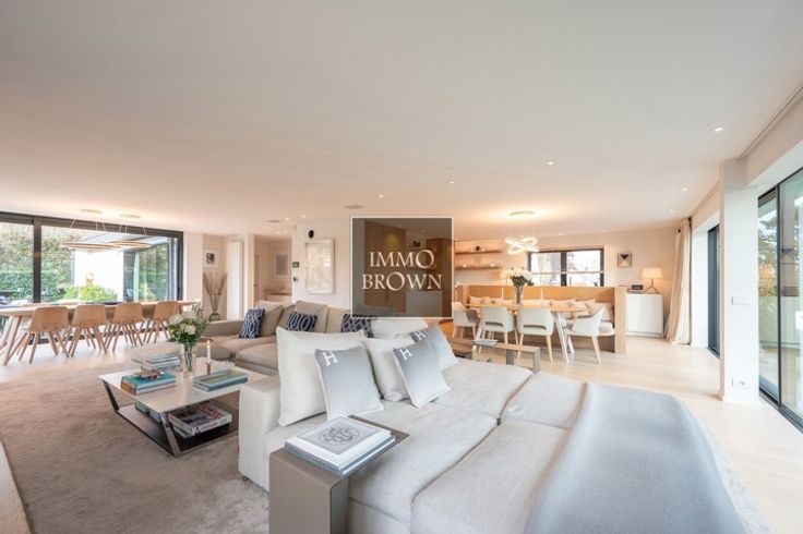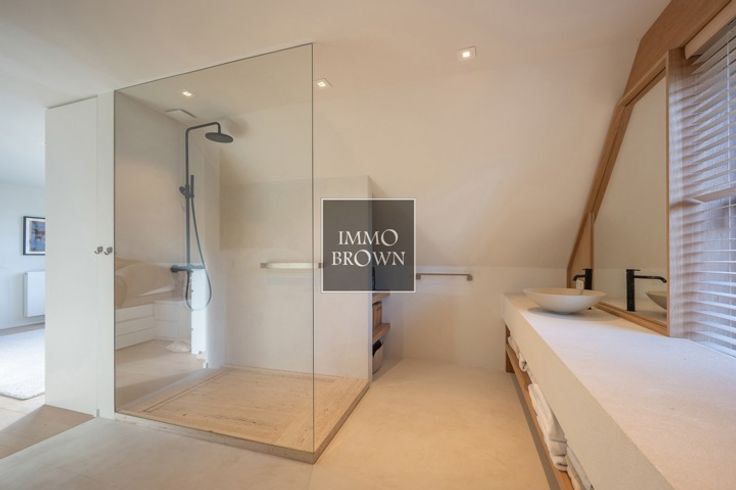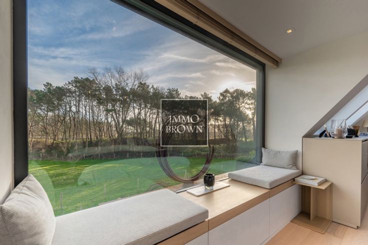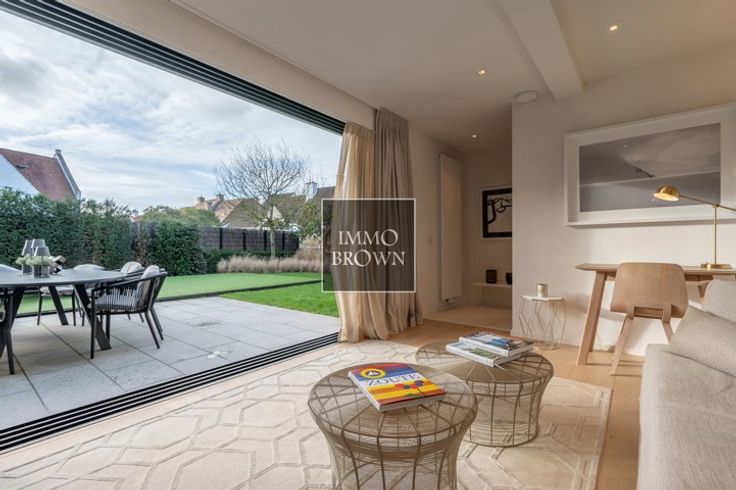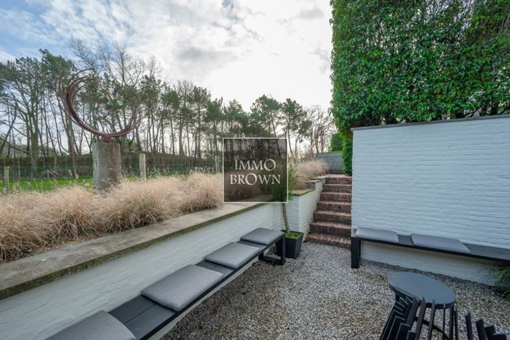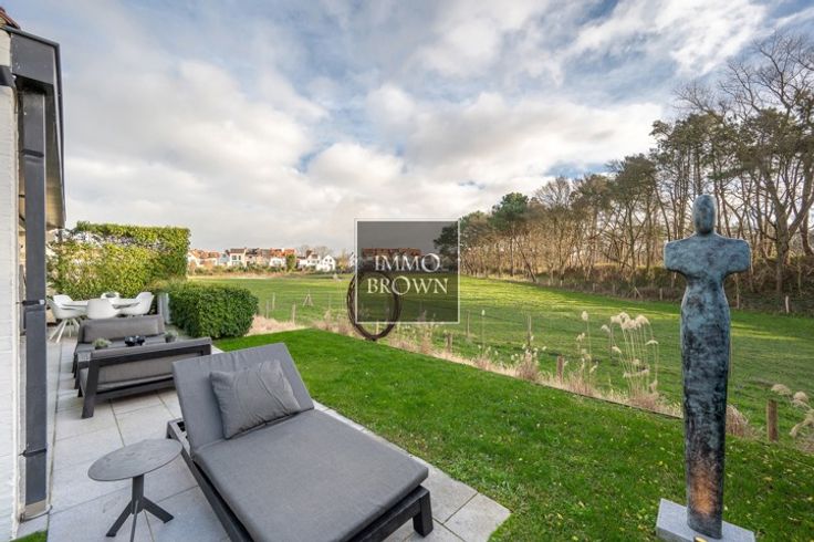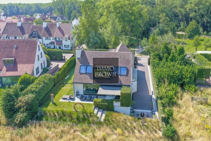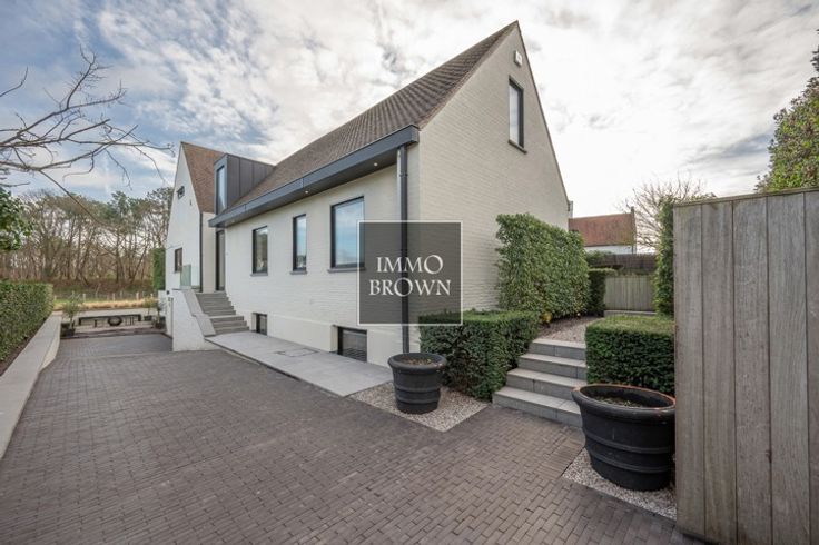 Vrijstaande villa met prachtig vrij uitzicht te koop in een prachtige groene omgeving in Het Zoute, op een boogscheut van het Zwin en het gezellige Oosthoekplein. Hoogstaande renovatie uitgevoerd in 2021. Indeling van de woning: Inkomhal met toilet en vestiaire. Ruime woonkamer, badend in het licht dankzij grote raampartijen met uitzicht op het platteland, bestaat uit een woonkamer met gashaard en een aangrenzende eetkamer met volledig uitgeruste open keuken en ontbijthoek. Ook op het gelijkvloers is er een ruime tweepersoonsslaapkamer met uitzicht op de tuin, met dressing en en-suite badkamer met dubbele wastafel, bad, inloopdouche en toilet. Op de eerste verdieping is er een royale masterbedroom met gashaard en prachtige en-suite doucheruimte met stoomcabine. Grote ramen met uitzicht op het platteland. Apart toilet. Een derde slaapkamer met tweepersoonsbed met en-suite badkamer (dubbele wastafel, inloopdouche en toilet). De vierde slaapkamer, met aangrenzende badkamer, bevindt zich op de kelderverdieping, waar natuurlijk daglicht binnenvalt, evenals een fitnessruimte die ook gebruikt kan worden als vijfde slaapkamer. De villa is volledig onderkelderd, inclusief een zeer ruime garage voor 2 auto's.. Oprit voor meerdere auto's naar de villa, die wordt afgesloten door een buitenpoort. Mogelijkheid om een zwembad te plaatsen.