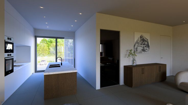 Groenaanleg straatkant + achterkant en verharding oprit + parking is voorzien.