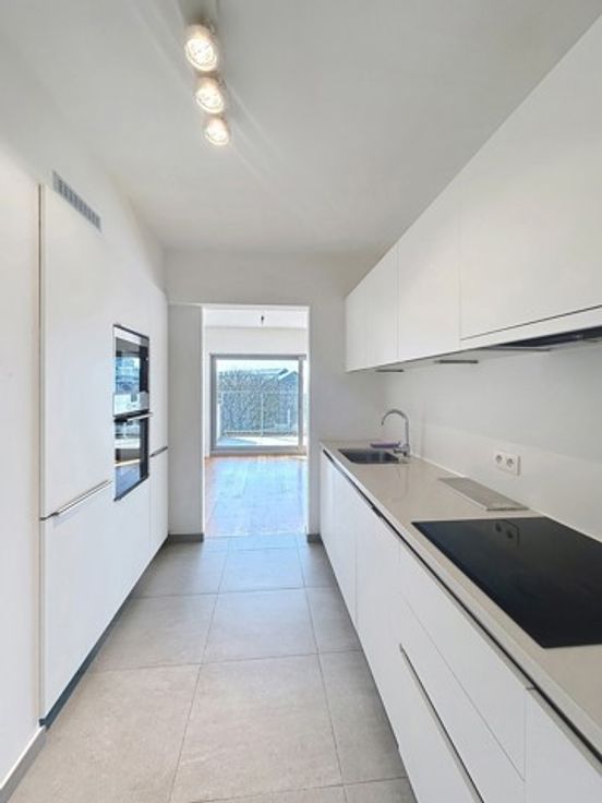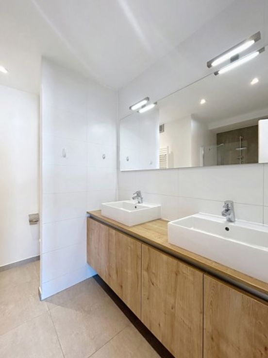 Bathim&CO offers you a luxury apartment on the 7th of 8 floors (the photos are of the “same” apartment one floor down) opposite Parc Cinquantenaire. It is composed as follows: A vast entrance hall with guest toilet, a large, super-luminous living area with access to a lovely, well-oriented terrace offering a tree-lined view of Parc Cinquantenaire, a super-equipped semi-open kitchen (built-in oven and microwave, fridge, freezer, dishwasher), to the rear two bedrooms, each with its own bathroom and shower room and one with a 3m² terrace, a laundry area, storage space. Possibility of renting a parking space. Charges: 275€ (heating, hot water, cold water, insurance, utilities). Other: PEB C, reinforced door, parquet flooring, videophone, private cellar, bike room. Visit soon with Sascha | sb@bathim.be