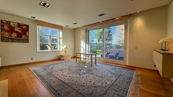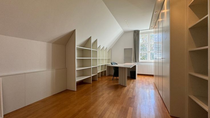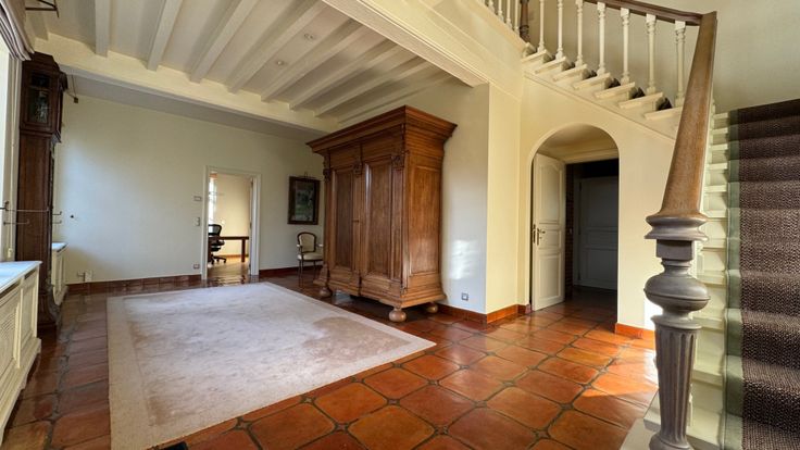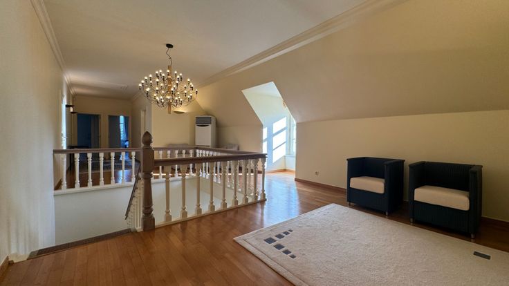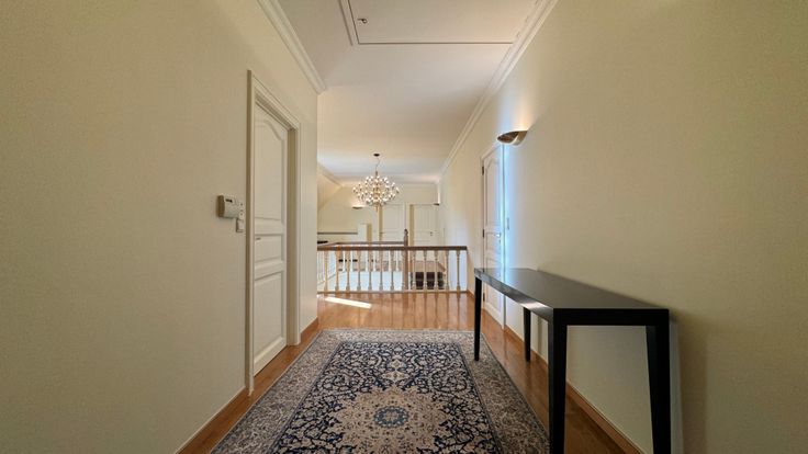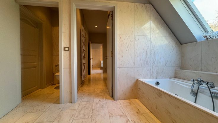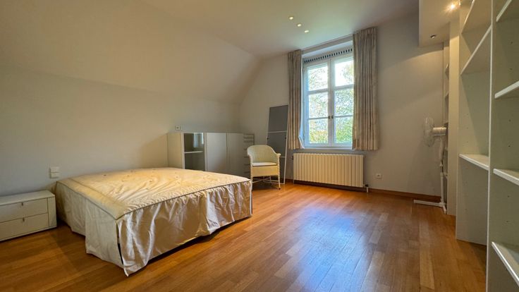 Via de trap komen we terecht in een open nachthal die toegang biedt tot drie slaapkamers, bureelruimte en een dressing. Twee slaapkamers hebben rechtstreekse toegang tot een eigen badkamer, telkens...