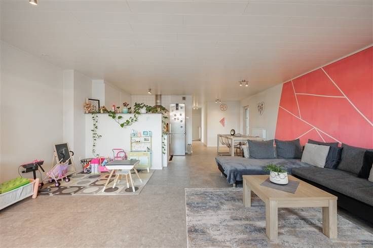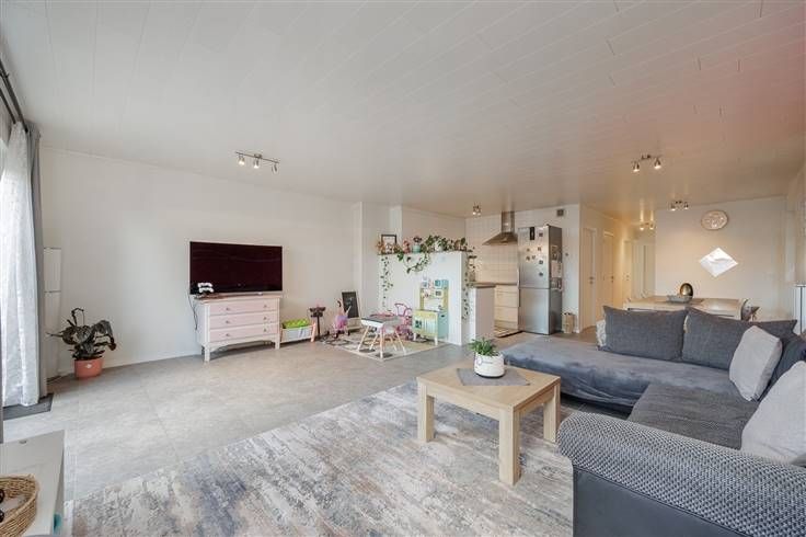 Dit appartement bevindt zich op een absolute toplocatie. Zo zijn winkels, scholen, openbaar vervoer en allerhande voorzieningen op wandelafstand bereikbaar. Het appartement heeft een hele ruime leefruimte (65m²). Door de grote raampartijen geniet u hier van veel lichtinval. Aansluitend op de leefruimte bevindt zich de open keuken. De keuken is praktisch ingericht en naast de keuken bevindt zich een ruime berging met aansluitingen voor wasmachine en droogkast Vervolgens is er een apart toilet. De badkamer is voorzien van een douche en een badkamermeubel met dubbele wastafel. Vooraan bevinden zich twee slaapkamers van 13m² en 12m². De eerste slaapkamer is heel ruim en geniet van veel lichtinval. De tweede slaapkamer kan tevens worden ingericht als dressing of extra bergruimte. Bijzonderheden: - Aangelegd terras - Elektriciteit conform - Energiezuinig appartement Dossierbeheerder: Jim De Ketelaere - jim@omniavastgoed.be 0495/56.53.40