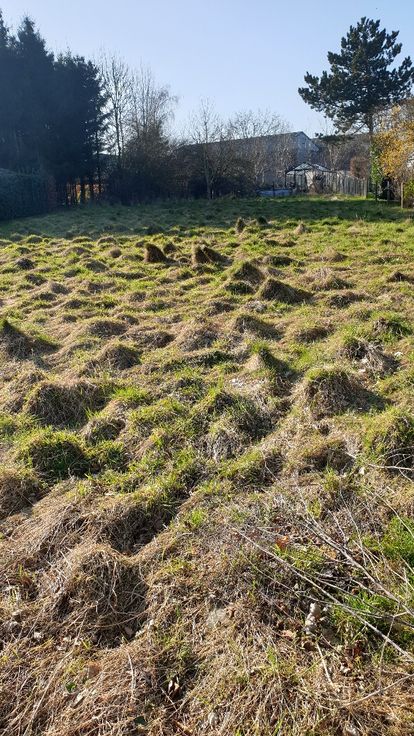 Goed georiënteerd perceel met +/- 20m frontbreedte; enkele fruitbomen en een kas van +/- 10m².