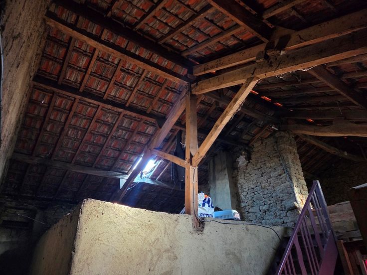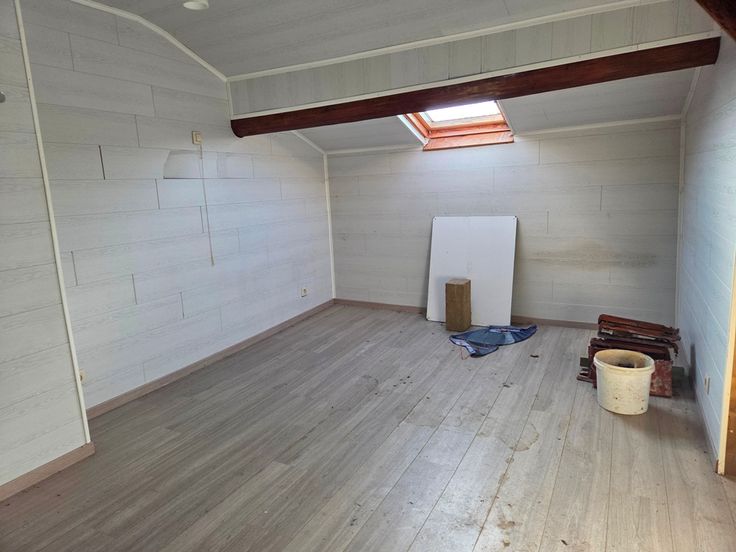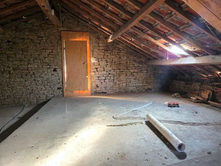 L’étage compte 4 chambres et une salle de bain à rénover.