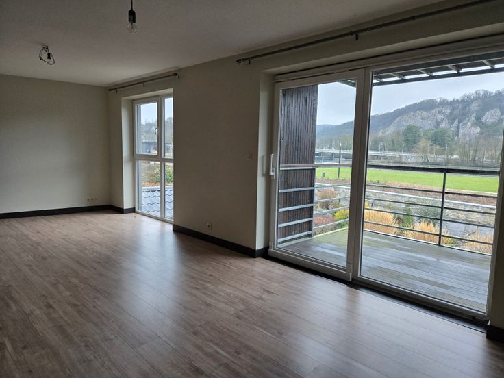 Dans un petit immeuble de trois lots avec vue superbe sur Meuse et rocher de Poilvache se trouve cet appartement.