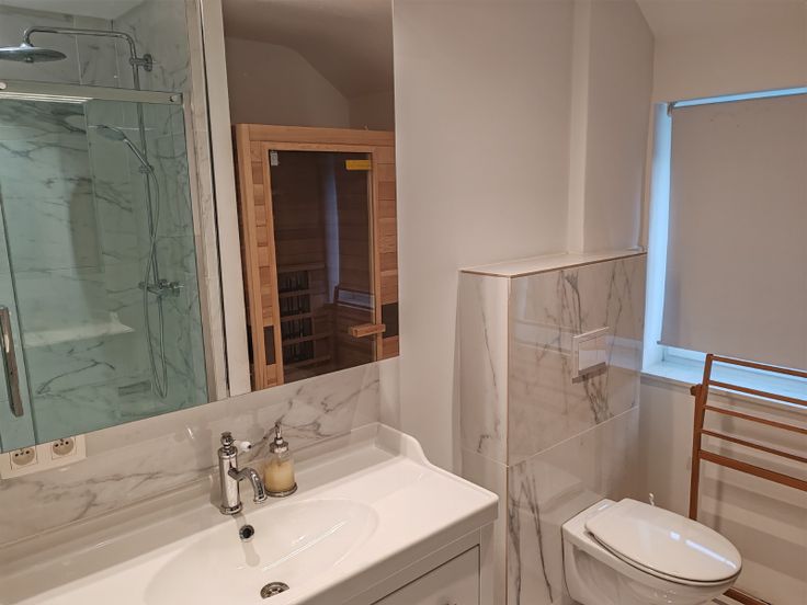 A l'étage, coin bureau, chambre parentale avec dressing et sdb + 4 grandes chambres, 1 sdd avec sauna infrarouge, buanderie et wc.