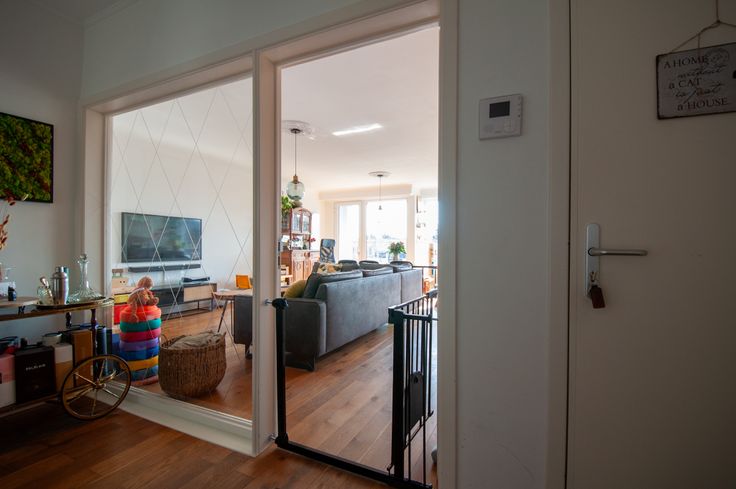 Bij binnenkomst word je verwelkomd in een ruime hal met een warme parketvloer die doorheen het hele appartement loopt. De zuidgerichte leefruimte met veel natuurlijk licht geeft toegang tot een gezellig terras. De open keuken met koffiehoek is stijlvol en functioneel, ideaal voor gezellige momenten.