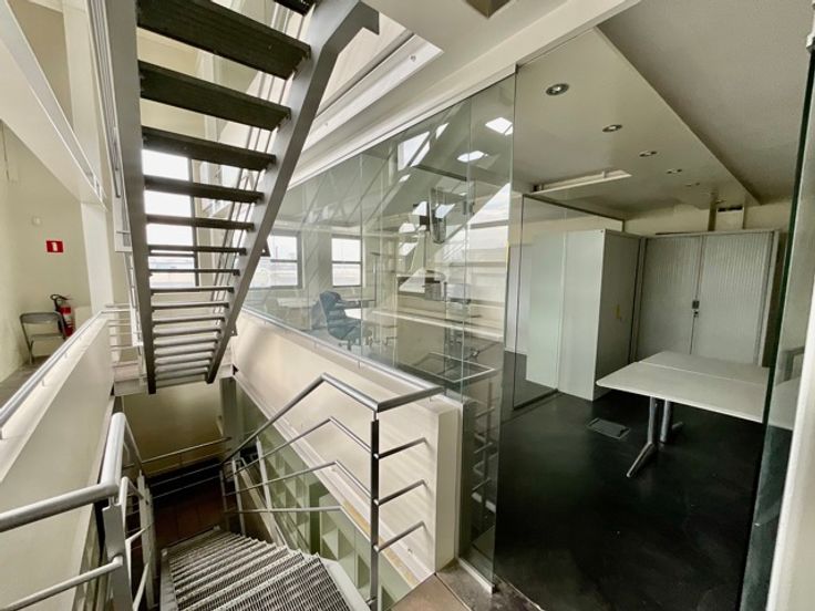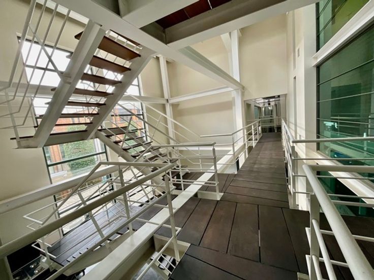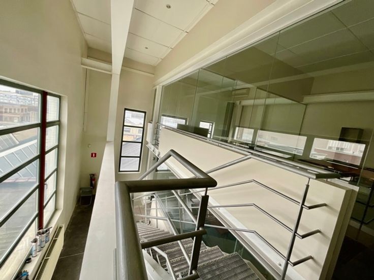 In een unieke setting, binnen een voormalige fabriek die volledig werd heringericht door een architectenproject, bieden deze kantoren verspreid over drie verdiepingen een inspirerende en comfortabele werkomgeving.