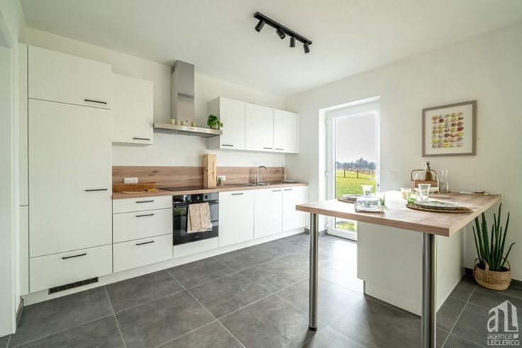 L’Agence Leclercq vous présente une parfaite combinaison entre élégance et sérénité au cœur du village de Wiers. Laissez-vous séduire par cette maison neuve de caractère où modernité et nature se rencontrent harmonieusement. Située dans un cadre paisible entre Tournai et Péruwelz, cette demeure 2 façades avec 3 chambres, vous offre un espace de vie lumineux et une atmosphère chaleureuse. Votre futur nid douillet se compose comme suit: Au rez-de-chaussée: Un hall d’entrée distribue: un WC séparé avec lave-main, un escalier en hêtre vers le 1er étage, un vaste séjour traversant avec cuisine ouverte de près de 45 m². Derrière cette dernière se trouve une large buanderie. L’espace de vie s’ouvre sur un beau jardin clôturé, orienté sud, avec une vue dégagée sur la verdure… Au 1er étage: Un hall de nuit dessert: 3 chambres dont une suite parentale de près de 22 m² avec dressing et une superbe salle de bain (double vasque, WC suspendu, douche et baignoire). Caractéristiques techniques: - Ventilation simple flux - Chauffage au sol avec chaudière gaz - Citerne d'eau de pluie - 2 places de parking PEB "A" - soit 63 kWh/m².an - consommation théorique totale d'énergie primaire 8.663 kWh/an - N°20240806503879 Les petits plus selon l’agence immobilière Leclercq - Isolation thermique et phonique à la pointe ! - Cadre verdoyant. - Prestations haut de gamme. Bien référencé 6642864 Vente sous régime TVA Publicité à caractère non contractuel et ne constituant pas une offre.