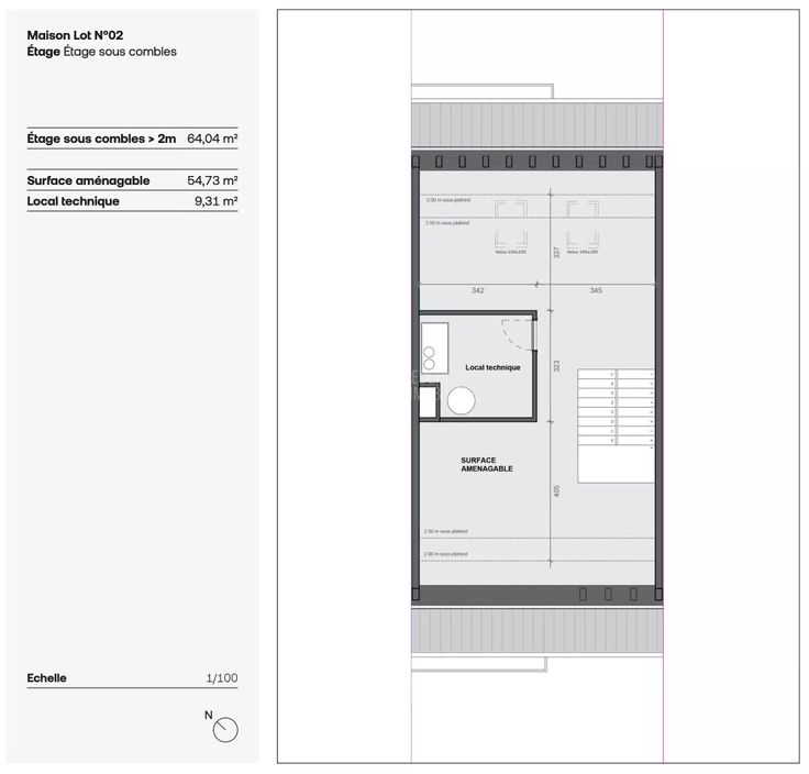 Au 2ème étage : Combles aménagés avec une superbe pièce de 54,73 m², offrant de nombreuses possibilités, comme une salle de jeux ou une salle de cinéma. Un local technique de 9,31 m² complète cet ensemble.