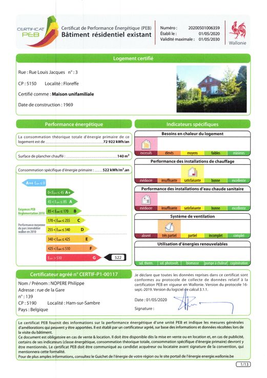 L’artisan de l’immobilier vous propose cette jolie maison 4 façades avec grand parking, jardin et garage nichée au cœur du petit village de Buzet dans l’entité de Floreffe à 2 pas des commerces et écoles dans un quartier calme. Elle se compose au rez-de-chaussée d’un hall d’entrée avec débarras, d’un WC, d’un séjour très lumineux avec balcon, d’une cuisine équipée, d’une petite salle de douche avec espace buanderie et de 2 grandes chambres orientées vers le jardin. A l’étage : hall de nuit, grande pièce de jeux/loisir ou bureau pour télétravailler et grand grenier de rangement. Dehors, un grand jardin arboré et une belle terrasse dans un cadre champêtre avec petit abri de jardin, le garage de gauche est à la disposition du locataire uniquement, l’accès au hangard est permis pour aller voir la chaudière et la cuve à mazout mais l’usage est réservé au propriétaire qui y vient régulièrement (entrepôt mais pas d’activité bruyante). Le grand parking permet de garer plusieurs véhicules. La maison vient d’être repeinte et est idéale pour un couple avec 1 ou 2 enfants maximum, ou pour un couple de pensionnés intéressés par un pain-pied. Chaudière à mazout, châssis munis de double vitrage, électricité remise aux normes. Loyer 1000€/mois, caution 2 mois, charges individuelles. PEB G : Espec : 522 kWh/m².an - Etotale : 72922 kWh/an - N°20200501006359. Pour plus d'infos et consulter les plans, rdv sur www.lartisandelimmobilier.be ou téléphonez au 0475/871.841.