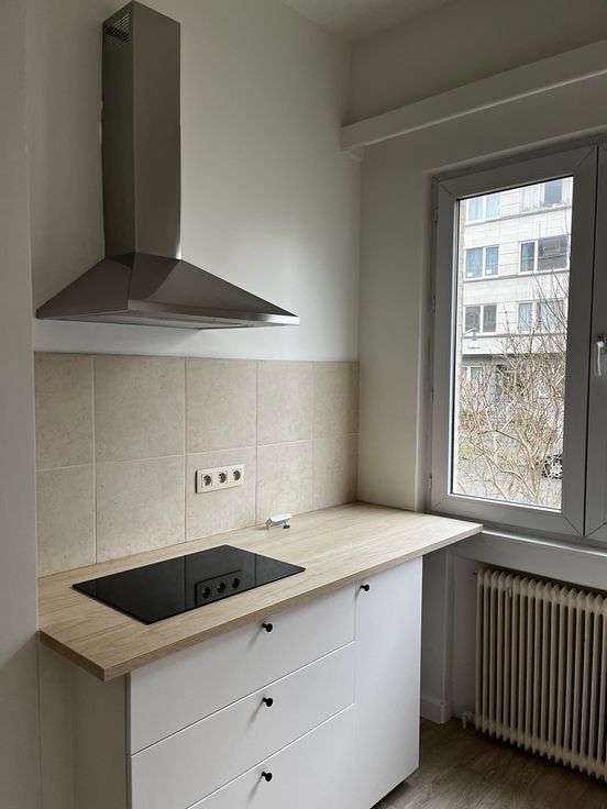 Studio proche de l'ULB du tram et du cimetière d'Ixelles de 25m2 à louer. Situé au RDC d'un immeuble. Le bien se compose d'un salon une cuisine et une sale de douche.