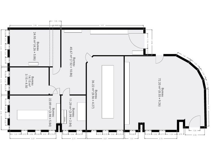 - 4 bureaux/salles de réunion séparés