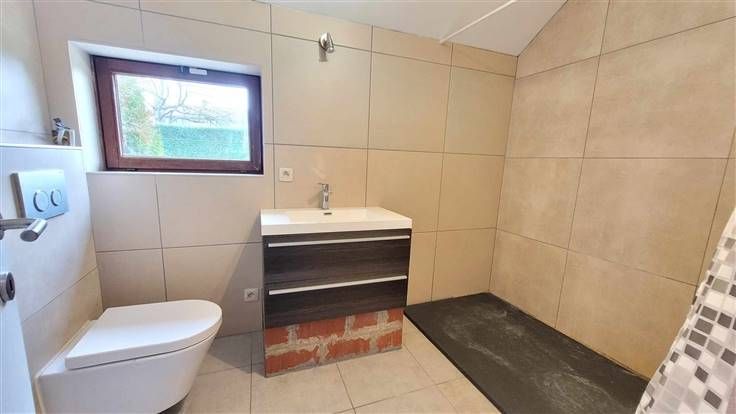 Sorry er is geen nederlandse vertaling beschikbaar. Charmante maison semi-mitoyenne située dans l'une des rues les mieux cotées du village de KAIN, à deux pas des écoles dans une rue peu fréquentée, AU CALME. Vous emprunterez le hall d'entrée qui dessert un local technique et le coin wc, dans le prolongement vous arriverez dans l'espace à vivre intimiste et lumineux qui accueille la cuisine complètement équipée et le salon qui est très cosy. Dans la pièce jouxtant cette espace, vous trouverez une salle à manger et la salle de douche comprenant une douche italienne et un wc suspendu. L'étage dispose d'un hall de nuit desservant 2 chambres dont une très spacieuse ainsi qu'un espace polyvalent (bureau/dressing). Le sou .