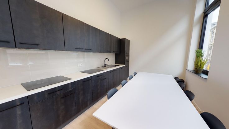 Deze volledig vernieuwde en bemeubelde studentenkamer is voorzien van eigen prive sanitair en een ontbijtgelegenheid (ingebouwde microgolfoven en koelkastje) op de kamer. Daarnaast beschikt de gezellige studentenresidentie over een ruime volledig geinstalleerde gemeenschappelijke keuken. Ideaal voor elke student die volgend academiejaar comfortabel wil doorbrengen!