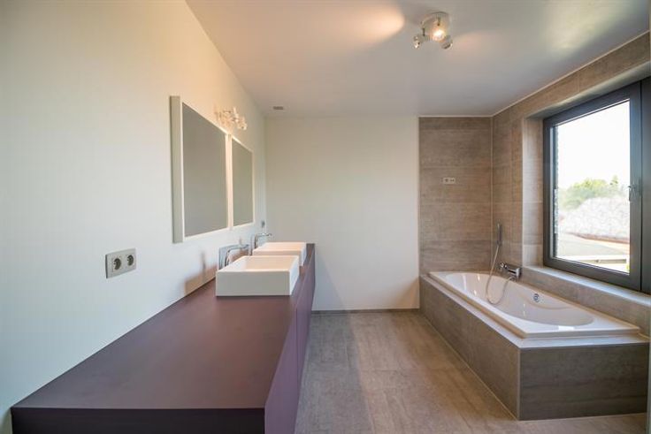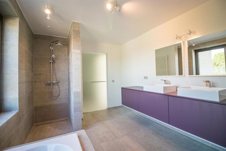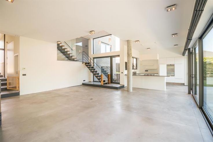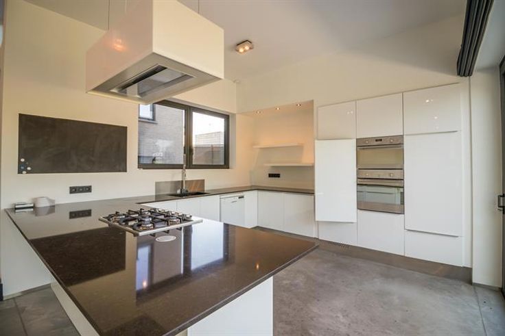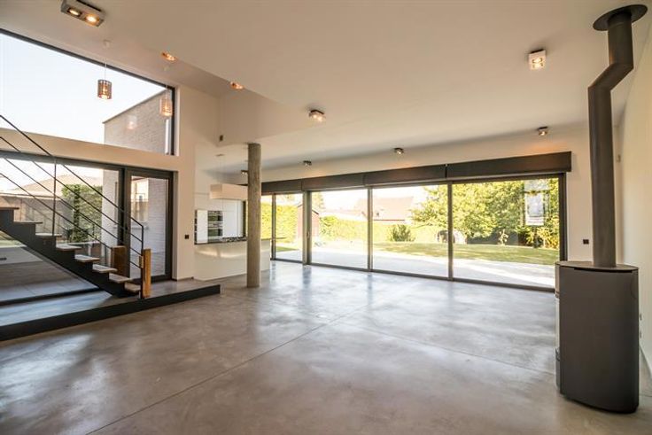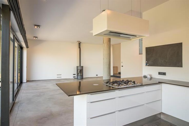De villa onderscheidt zich door haar moderne architectuur met grote raampartijen die zorgen voor een overvloed aan natuurlijk licht en een prachtig uitzicht op de tuin. De open leefruimte met strakke betonnen vloer en designhaard creëert een stijlvolle en warme sfeer. De volledig uitgeruste keuken met hoogwaardige toestellen en kookeiland vormt het hart van de woning.