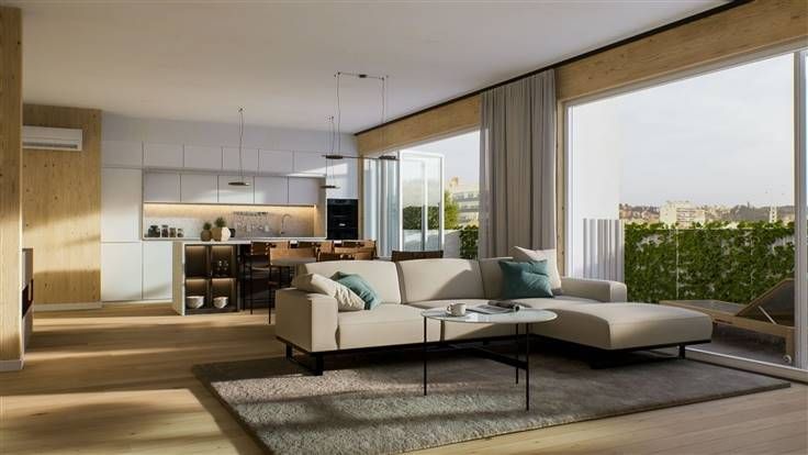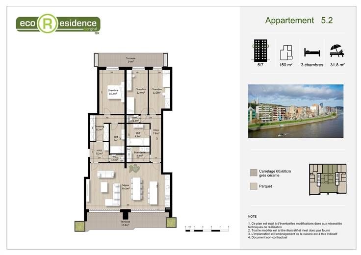 De QR Eco-Residence is een CLT houten constructie die energie-efficiëntie en welzijn biedt. Deze doorloop Q-Zen (bijna-energieneutrale) flat biedt een harmonieuze leefruimte. Het bestaat uit een hal, een woonkamer met open keuken die uitkomt op het terras, een moderne badkamer, een apart toilet, een functionele bijkeuken en 1 slaapkamer (15 m²) met eigen terras. Alles in een intelligente lay-out die ruimte en comfort maximaliseert. Laat je verleiden door Q-ZEN wonen! Diversen: kelder inbegrepen / driedubbele beglazing / omkeerbare airconditioning in de woonkamer Kone lift