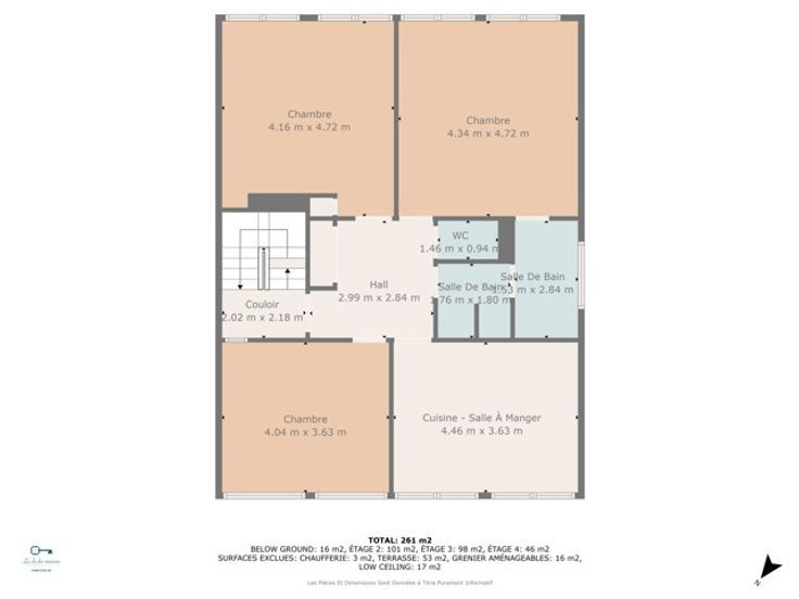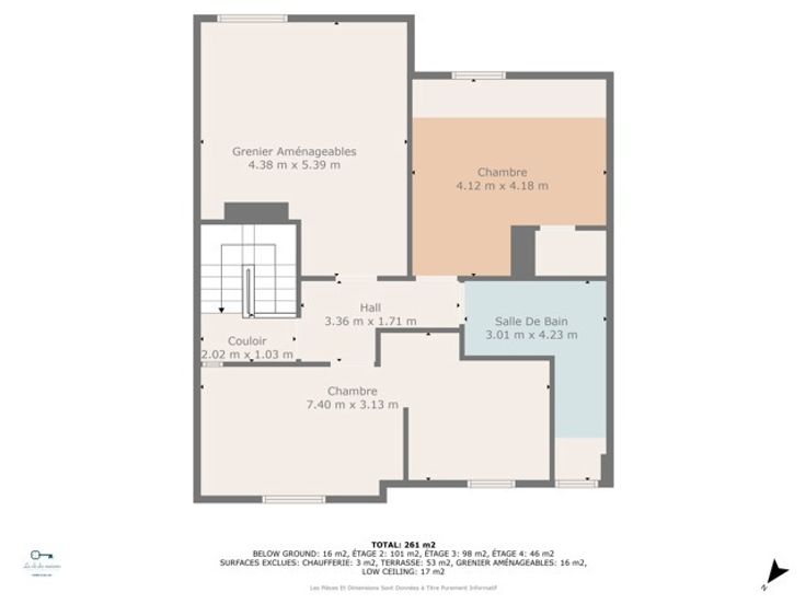 3e : Hall de nuit, 2 chambres, salle de bain et grenier aménageable.