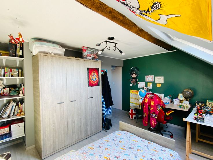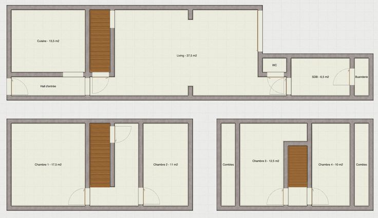 Pour l’étage, 2 chambres au premier, avec un hall de nuit menant aux 2 chambres du grenier.