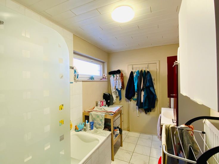 L'habitation est composée comme suit : hall, cuisine, living, WC, SDB & buanderie.