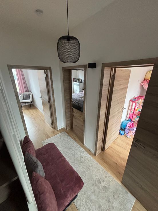 Au 1er étage : hall de nuit, 1 salle de douche (lavabo, douche, wc), 3 chambres ( 18 m2, 13 m2, 8 m2).