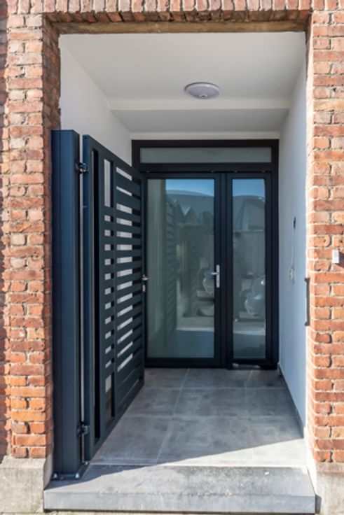 L’accès se fait par un porche sécurisé par une grille métallique, menant à un hall de distribution desservant les appartements du RDC et du 1er étage.