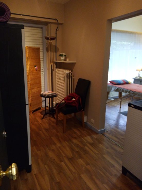 Au rez de chaussée d'un bloc d'appartements situé dans un parc : deux pièces separées d'une porte coulissante: l'une de 14 m2 et l'autre de 10m2 avec WC (+ grande terrasse et jardinet non cloturable mais temporairement non accessibles pour cause d'échafaudages), cave ; très lumineux; parlophone, entrée securisée (badge), parking facile. Ideal bureau privé, cabinet activité paramedicale .. Libre. Loyer 450 euros et 60 euros provision charges comprenant communs, chauffage et eau.