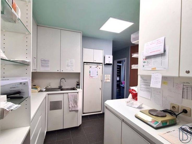 GOEDGELEGEN KANTOORRUIMTE/WINKEL. Direct instapklaar. Handelsgelijkvloers met aparte keuken, toilet, stockageplaats, berging en bureau.