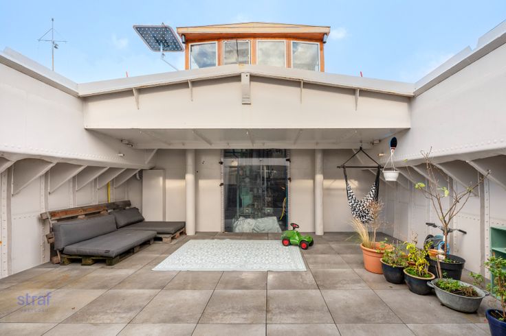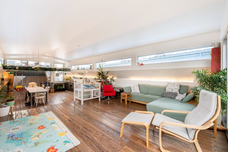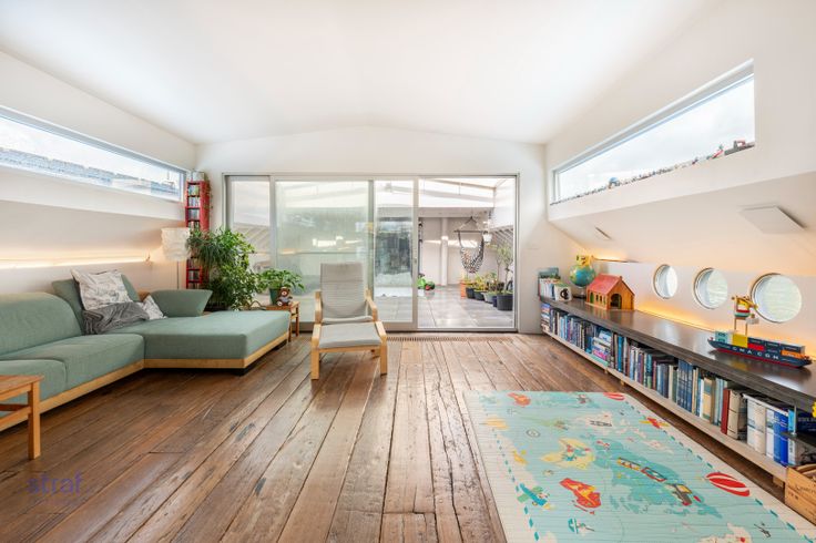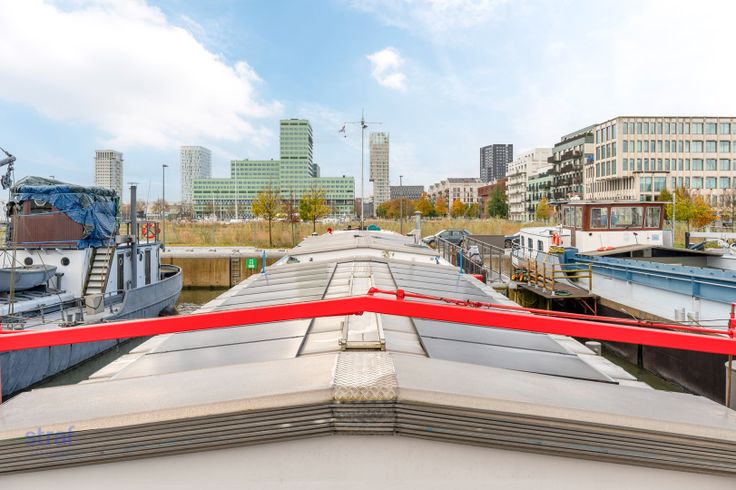 Ik heb een boooot! Haar naam is Jelty en ze ligt hier in de Houtdok-Zuidkaai 71!  We zijn duidelijk kei enthousiast en nemen je graag mee op verkenning door deze woonboot op ‘t Eilandje.  Wonen aan het water heeft iets idyllisch. Wonen óp het water is zo mogelijk nog specialer. Ziehier: een prachtige woonboot van 255m2 , gelegen in het Antwerpse Houtdok. Antwerpen telt amper 34 aanlegplaatsen voor woonboten. En dit is er dus één van. Unieker kan bijna niet.  Wanneer je binnenwandelt, zou je door de grote ruimtes bijna vergeten dat je op een boot bent. Veel lichtinval maakt het aangenaam vertoeven, in welke hoek je ook staat. En waar je ook bent, je hebt zicht op water! Hoe zalig is dat? De slaapkamers die nu ingericht zijn als kinderkamers, hebben hoge plafonds waardoor je ook nog eens in de hoogte kan werken. Zei er iemand home cinema? Of extra bureau? We geven maar ideeën mee he! Verder zijn er nog 2 andere slaapkamers aanwezig. Doorheen de boot vind je ook heel wat authentieke elementen terug zoals de originele vloer die alles meteen een huiselijk gevoel geeft of de originele deur vooraan die net zo goed van een grote kluis had kunnen zijn ;-) De terrassen in een paar woorden: groot, veel privacy en vooral veilig om de kindjes te laten buitenspelen. Verder zijn er ook nog zonnepanelen aanwezig op het dek. Je hoeft alleszins geen jaarlijks vakantiebudget meer opzij te zetten, want vanop je boot is het élke dag vakantie. Vanuit de patrijspoortje... Renovatieplicht: nee