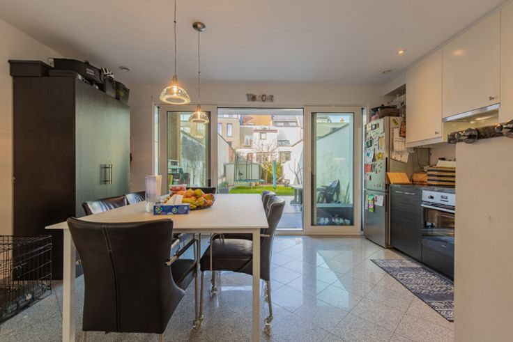 Gebouwd in 2015, een appartement met tuin en terras op de gelijkvloerse verdieping. Energiezuinig. Inkom, toilet, eetplaats en open keuken. Trap naar nachthal, woonkamer met terras, toilet, twee slaapkamers en kwalitatieve badkamer. Berging. Staanplaats + 25.000€ Pluspunt: gescheiden riolering in orde, regenwater is reeds gescheiden van afvalwater (2020). Driedubbele beglazing.