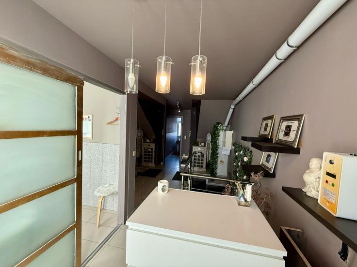 Maison de commerce entièrement rénovée dans le centre-ville de Mons, elle se compose comme suit: